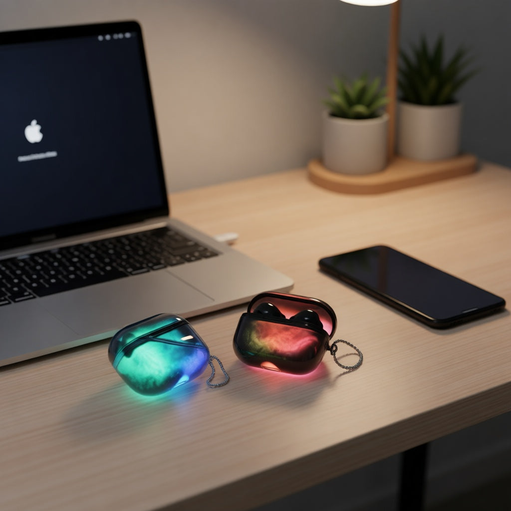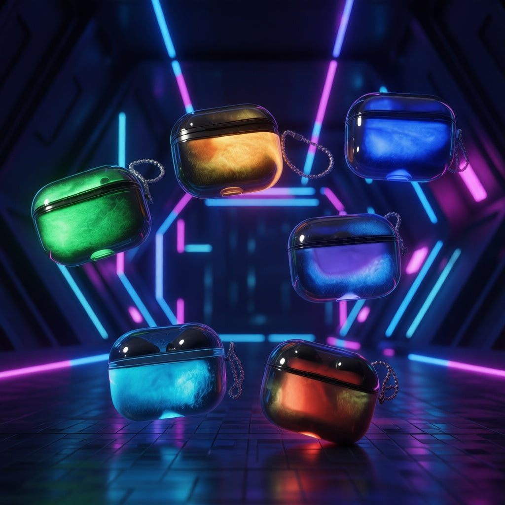 Forget static plastic. You need gear that moves. This quicksand shell glows when the lights go out, making your tech impossible to lose. It’s a reactive beacon that looks alive while keeping your AirPods safe from the daily grind.